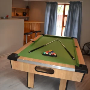 Relax in the entertainment area, where you can unwind with a game of 8-ball pool (All equipment ready and available). You also have a self-catering bar area, perfect for serving drinks while braaing.